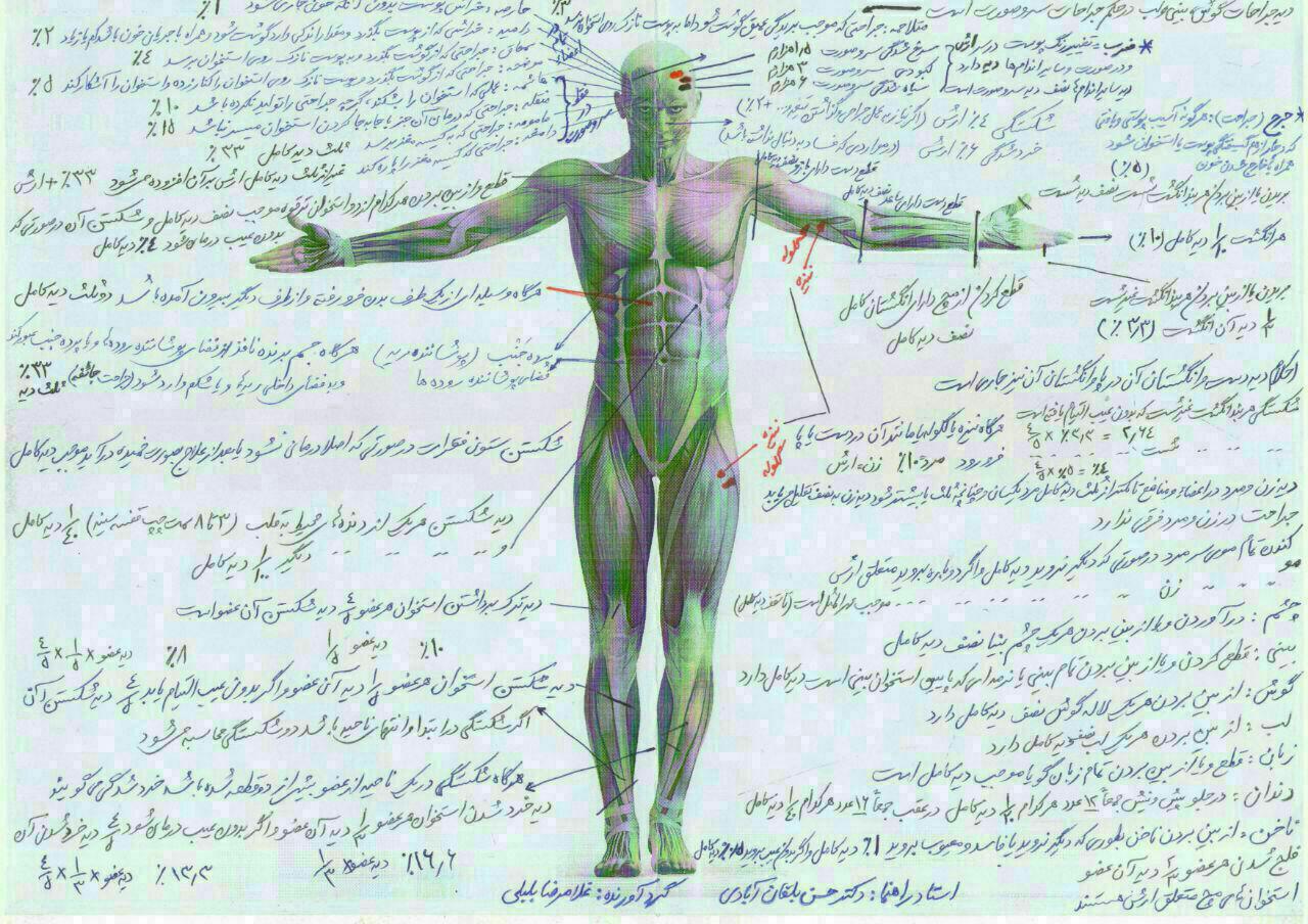 پاسخ: از آنجا که دیه اجزا با هم فرق دارد، بعنوان مثال اگر دو پا فلج شود یا دو تا چشم کور شود یا دو بیضه آسیب ببیند یا اگر کسی ادرارش قابل کنترل نباشد مشمول دریافت دیه کامل یک انسان می شود و به همین ترتیب برای هرکدام از اجزای بدن انسان درصدی از دیه کامل محاسبه می شود در نتیجه با جمع تمام آسیبهای وارد شده به یک انسان، تعداد دیات به 5/7 یا 3 دیه می رسد. که اصطلاحاً در بیمه نامه ها از آن به دیه دوم یاد می شود.