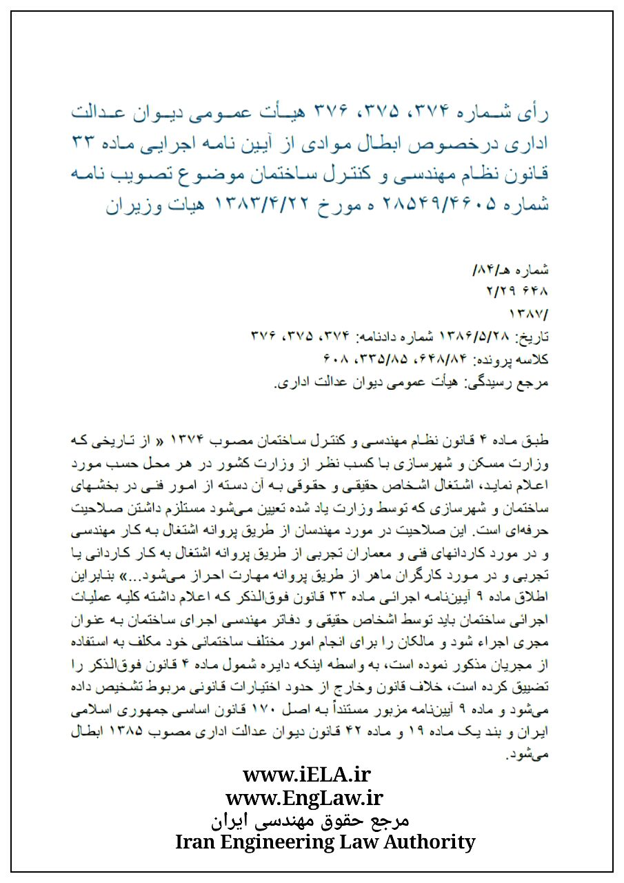 تعریف اخلاق مهندسی در حقوق مهندسی ، بیان علت دستور توقف ناظرین به ترکیب ( مجموعه ای از دلایل ) عدم رعایت موارد ایمنی برای نواقص فنی ساختمان ، بیان راه حل بمنظور جلوگیری از محکومیت قضایی مهندسین ناظر به دلیل ندادن مجوز شروع بکار بابت عدم حضور مجری ذیصلاح ، شرح رای دیوان عدالت اداری در خصوص ابطال الزام بکارگیری مجریان ذیصلاح در ساخت ساختمان ها