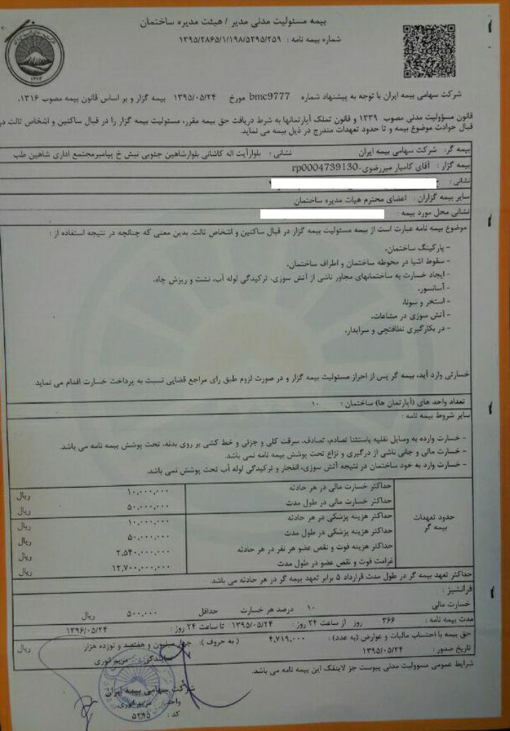 توجه بسیار مهم : مرجع حقوق مهندسی ایران هیچ پیشنهادی برای نوع بیمه انتخابی شما ندارد و تمامی عکسها و مستندات ارایه شده برای بیمه ها جنبه آموزشی دارد و ما نمایندگی هیچ شرکت بیمه ای را نداریم.