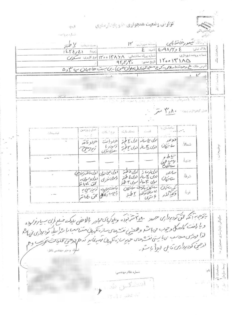 این مطلب هم میتونه مفید باشه  فصل چهار 4 گودبرداری ، قسمت 8 ( تدریس بروش موضوعی ) ، گود کامرانیه ، نحوه اعمال بند ۱۴ ماده ۵۵ قانون شهرداری ها زمانی که مالک ( سازنده ) یا مجری از دستورات و مکاتبات مهندس ناظر تبعیت نمیکنند و یا گود بدون تحکیم دیواره های آن به حال خود رها شده است ، خلاصه پرونده گود کامرانیه و نکات قابل تامل آن در رابطه با مهندس ناظر